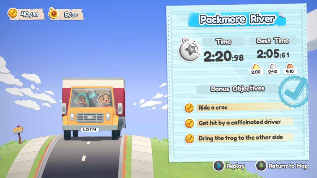 Enfin, je trouve Moving Out très amusant. Les dialogues sont drôles, notre façon de déménager les meubles est toujours aussi comique après *vérifie* 14h de jeu, l’histoire avance progressivement mais intelligemment et j’ai fini par me retrouver à tenter d’obtenir toutes les médailles d’or et réussir tous les objectifs bonus alors que, de base, je n’ai pas tendance à essayer à ce point.