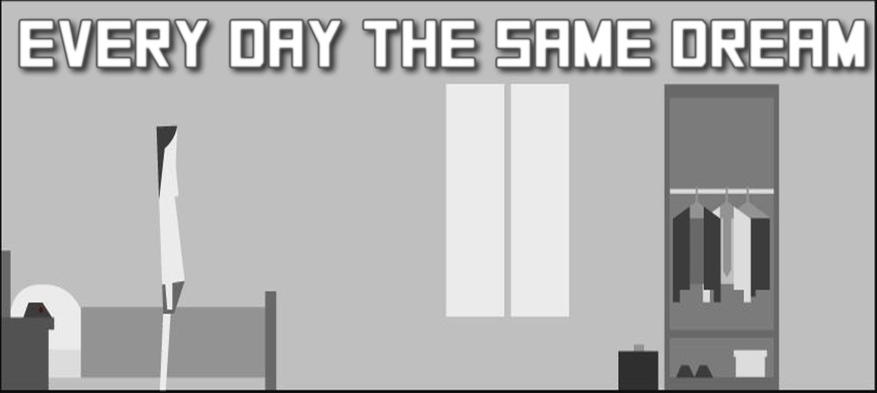 « Every day the same dream » est donc un jeu sorti en 2009 et que vous pouvez tester gratuitement ici. On y incarne un homme tout ce qu’il y a de plus générique, l’aspect générique étant renforcé par l’absence de visage. Celui-ci possède une vie lambda dans laquelle tous les matins il se lève, se prépare, regarde, la télé, subit sa voisine dans l’ascenseur, subit les embouteillages, subit son patron jamais satisfait puis subit son emploi avant de rentrer pour mieux recommencer le lendemain. Déjà-là nous aurions un titre intéressant qui tranche avec toutes les règles d’évolution propres au jeu vidéo. En effet, même s’il est courant d’avoir des gameplays répétitifs, comme dans les jeux d’arcade par exemple, l’augmentation progressive de la difficulté et des possibilités de jeu viennent contrebalancer cet ennui. Ici ce n’est pas le cas, le challenge est très faible car il consiste juste à déplacer son personnage et à appuyer sur Espace pour interagir soulignant le caractère automatique des tâches qu’il effectue. De plus la direction artistique en noir et blanc avec des personnages caricaturaux au possible achève de nous faire comprendre le caractère absurde et morne de l’emploi.