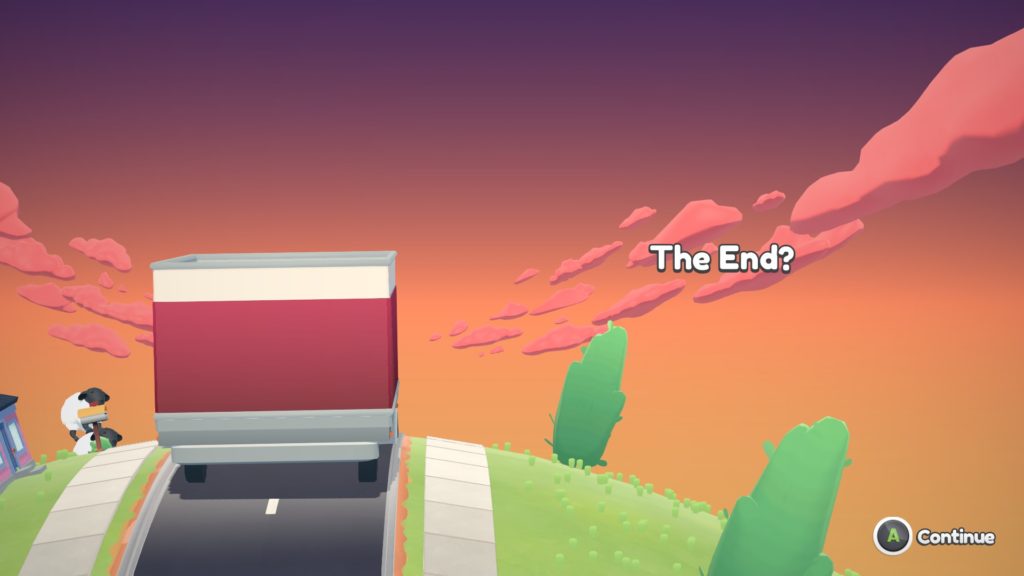 Au final, Moving Out est un jeu amusant qui a été conçu de manière intelligente, de façon à représenter et inclure les joueureuses dans leur diversité et à s’adapter à de nombreuses de configuration. En résulte un jeu qui est très agréable et qui, pour une fois, ne donne pas l’impression de s’adresser qu’à un profil très stéréotypé de joueurs et ça fait presque autant de bien au moral que de faire un câlin à un mouton (ce que vous pouvez faire sur Moving Out). Le jeu est actuellement à 22,99 euros sur Steam et, vous l’aurez compris, je pense en avoir déjà rentabilisé chaque centime.